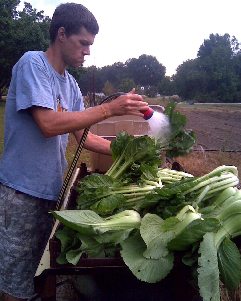 Hi all! Today I went with Ben to Double-T farm to help him tie tomatoes and pick some of our produce for this afternoon. I’m currently working on a couple papers on farming, I thought it would be nice to actually get out on the farm for some inspiration. While I was there, I took a few pictures to share with ya’ll.