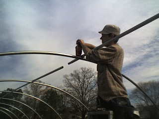 We have been framing up the last of 4 hoop houses on the farm.