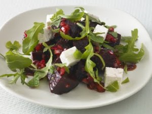 Variation: Roasted Beet and Goat Cheese Salad. Substitute a firm, crumbly goat cheese for the feta. Scatter the salad with 1/4 cup pomegranate seeds or toasted pine nuts.