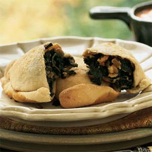 In addition to being tasty, kale is a good source of lutein, benefiting eye health, and vitamins A and C. Serve as a side dish with steak or roast chicken, or enjoy two turnovers as a meatless entrée. They are great made ahead and brown-bagged; reheat in a microwave or toaster oven.