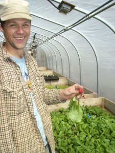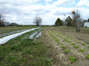 Spring is surely here and ol’ man winter has gone away! Sure, we may get a few more frosty nights but spring is here. Daffodils and flowering trees are blooming, the cover crops are shooting up and the earth is coming to life! Spiders and bees are out too…as are the weeds.Our first crops in the greenhouse are ready to harvest. We have new arugula, tatsoi, mizuna, lettuce and radishes. Look for them on our store. Coming soon are broccoli rabe and turnips.