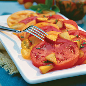 So, I realized I haven’t posted many recipes lately (or posted much all summer actually)…so I’m going to use the rest of this blog for exactly that. Right now we have tomatoes, summer squash, onions, potatoes, purple peppers, cucumbers, basil, and a few melons and eggplant (more of those to come soon). As usual, please feel free to post your own recipes to the comment box below or e-mail them to me at parker.patricia@gmail.com. We would love it if you shared some of your recipes with us!
