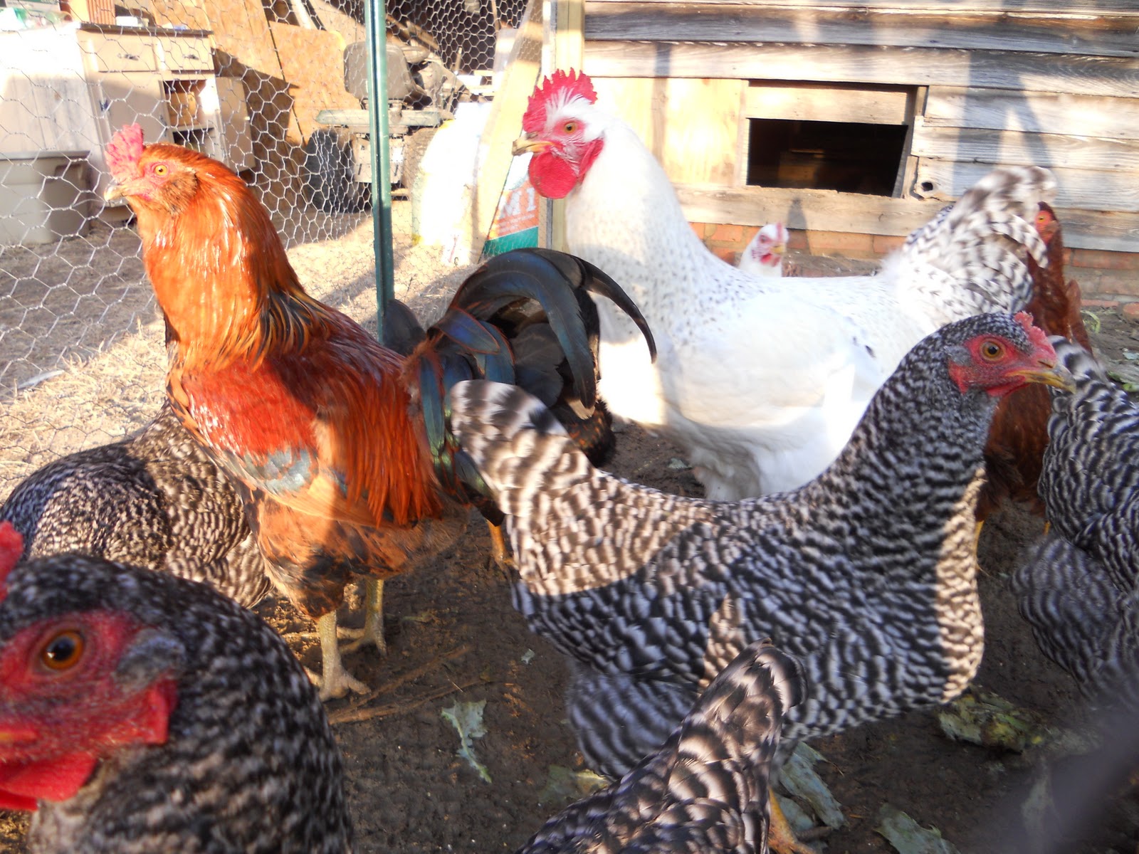 — They’ll be fine through the day. They’ll lay eggs throughout the day too. At some point, either in the morning when you let the chickens out – or sometime in the afternoon – or later in the evening when you close them up for the night – their water needs to be changed out. You don’t need to change out all the waterers everyday. We usually rotate them and do one or two – depending on how they’re looking/doing. —