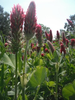 This is crimson clover. Ben planted it all over the farm to help provide more nutrients for our soil. Clover is particularly helpful for fixing nitrogen in the soil. It’s also very pretty.