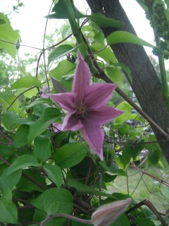 I have no idea of what this flower on the vine is called, but it’s gorgeous! It’s on our front porch with kiwi and grape vines.