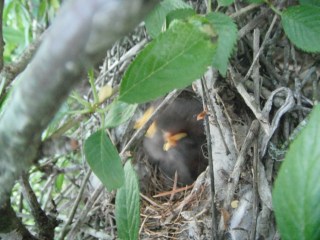 It’s hard to tell here, but these are baby birds in the weeping cherry. Their momma or daddy did not like me peeking through to photograph them, so I didn’t get any good shots. They sure did open their little yellow mouths for some food though.