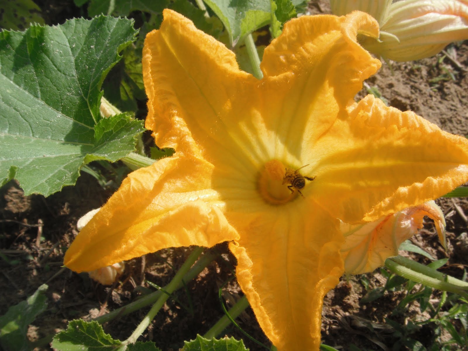 bee in a squash flower