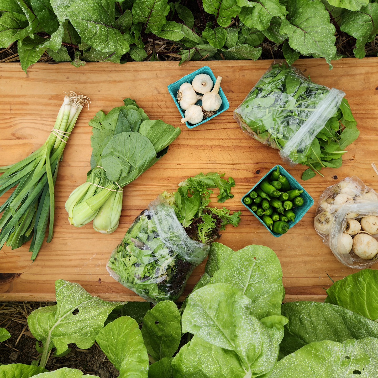 - greens like kale, collards, bok choy, mesclun mix, lettuce, arugula, frisee, spinach